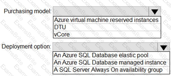 You need to recommend the appropriate purchasing model and deployment option for the 30 new databases. The solution must meet the technical requirements and the business requirements.