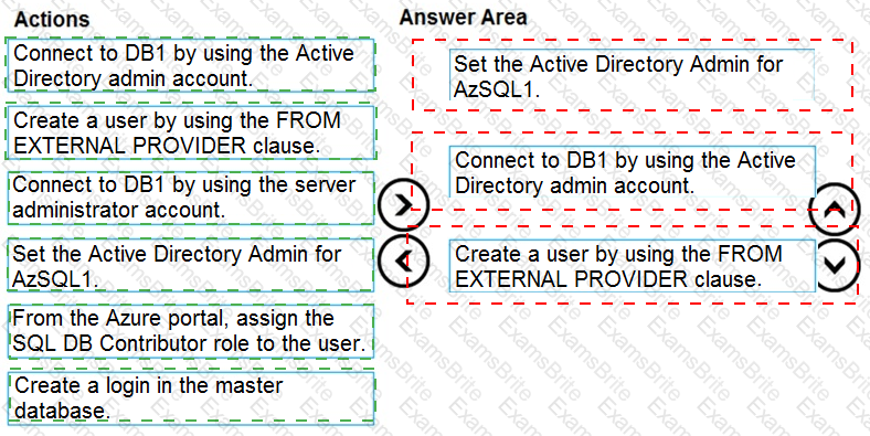 Which actions should you perform in sequence? To answer, drag the appropriate actions to the correct order. Each action may be used once, more than once, or not at all. You may need to drag the split bar between panes or scroll to view content.