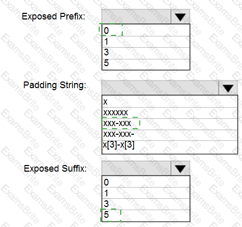 How should you configure the dynamic data mask? To answer, select the appropriate options in the answer area.