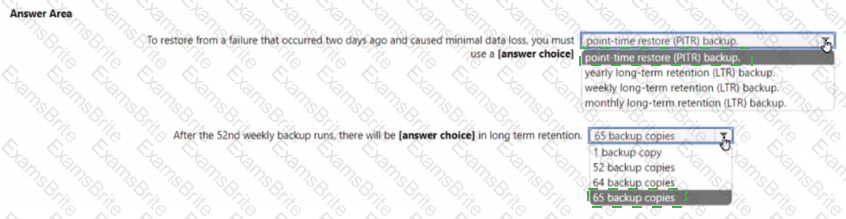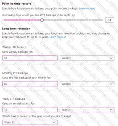 You configure backup for an Azure SQL database as shown in the following exhibit.