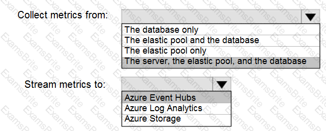 How should you collect and stream metrics? To answer, select the appropriate options in the answer area.
