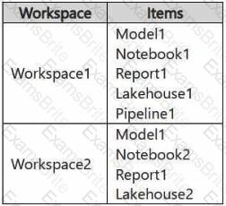 You have two Fabric workspaces named Workspace1 and Workspace2.