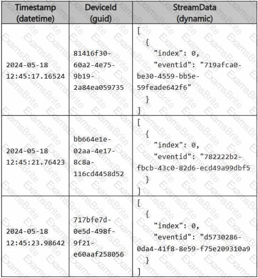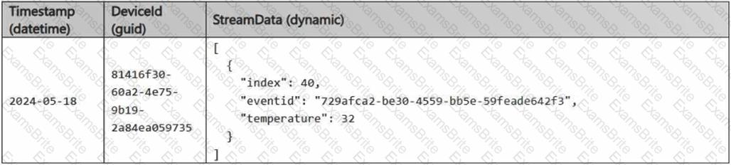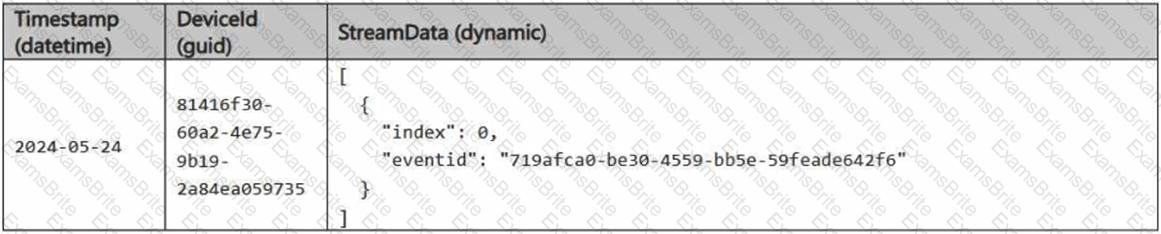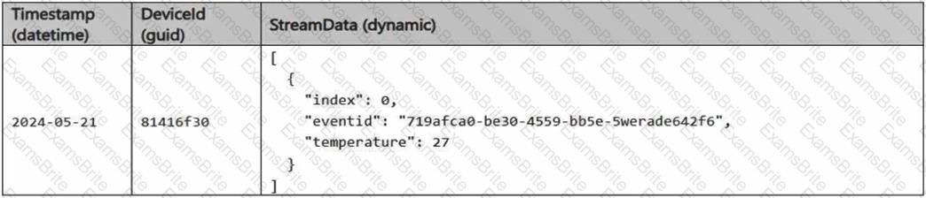 You have a Fabric workspace that contains an eventhouse and a KQL database named Database1. Database1 has the following: