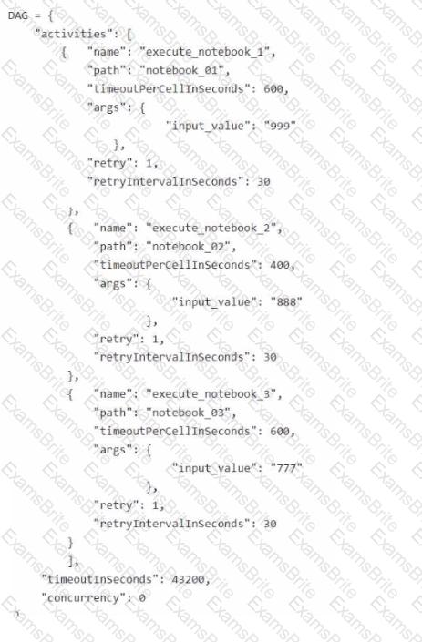 You are building a Fabric notebook named MasterNotebookl in a workspace. MasterNotebookl contains the following code.