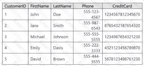 You need to provide User1 with access to the Customer table. The solution must prevent User1 from accessing the CreditCard column.