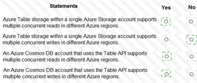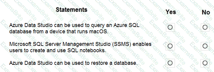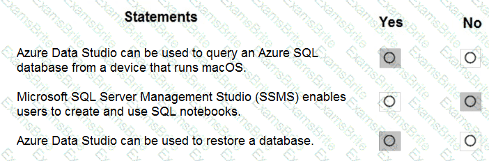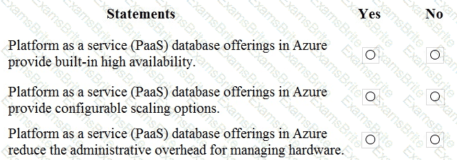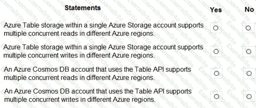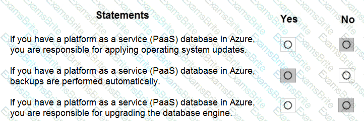 For each of the following statements, select Yes if the statement is true. Otherwise, select No.