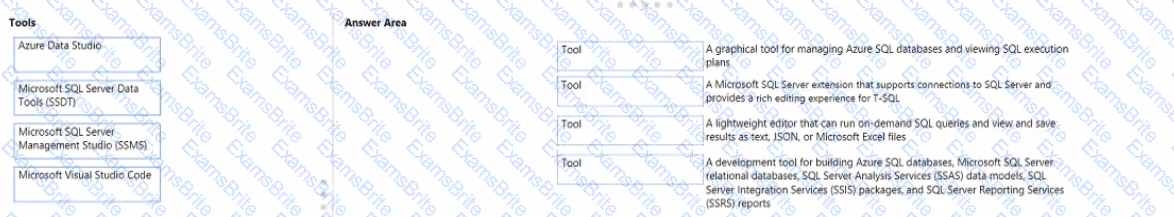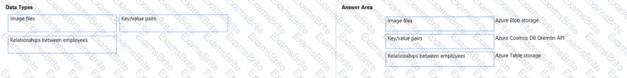 To answer, drag the appropriate data types from the column on the left to its service on the right. Each data type may be used once, more than once, or not at all.