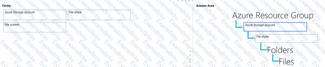 Match the Azure Data Lake Storage terms to the appropriate levels in the hierarchy.