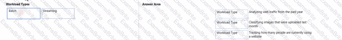 To answer, drag the appropriate workload type from the column on the left to its scenario on the right. Each workload type may be used once, more than once, or not at all.