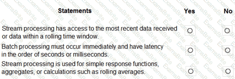For each of the following statements, select Yes if the statement is true. Otherwise, select No. NOTE: Each correct selection is worth one point.