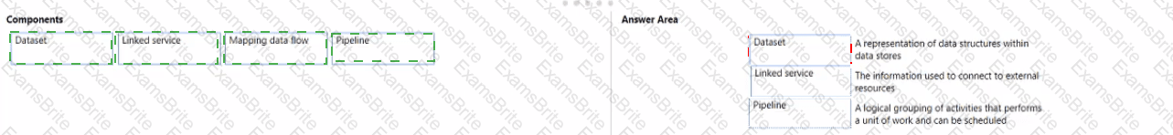 match the Azure data factory components to the appropriate descriptions.