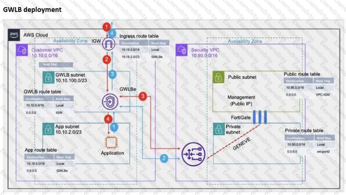 Which two statements are true about inbound traffic based on the IGW ingress route table and GWLB deployment shown in the exhibit? (Choose two.)