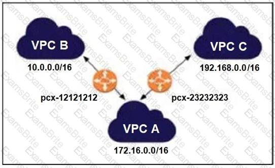 Which statement is correct about the VPC peering connections shown in the exhibit?