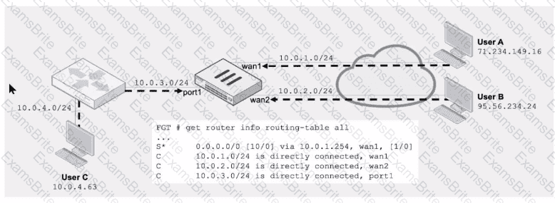 Refer to the exhibits, which show the configuration on FortiGate and partial internet session information from a user on the internal network.