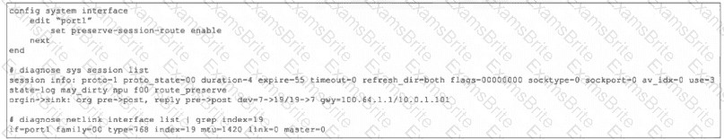 Refer to the exhibit, which shows the port1 interface configuration on FortiGate and partial session information for ICMP traffic.
