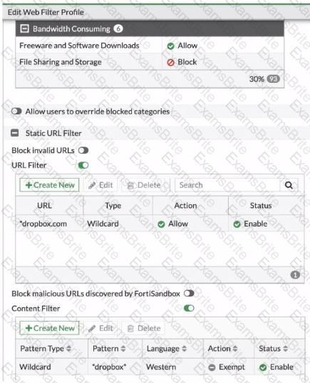 Refer to the exhibit, which shows a partial web filter profile configuration.
