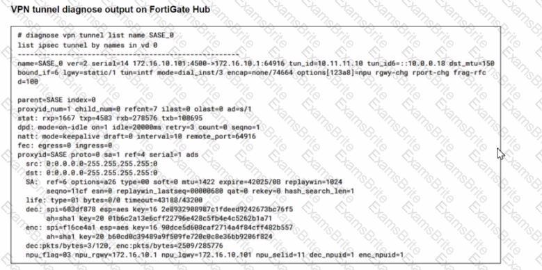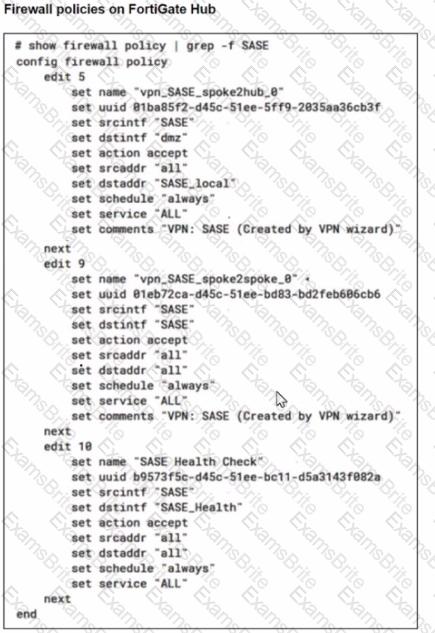 A FortiSASE administrator is trying to configure FortiSASE as a spoke to a FortiGate hub. The tunnel is up to the FortiGale hub. However, the administrator is not able to ping the webserver hosted behind the FortiGate hub.
