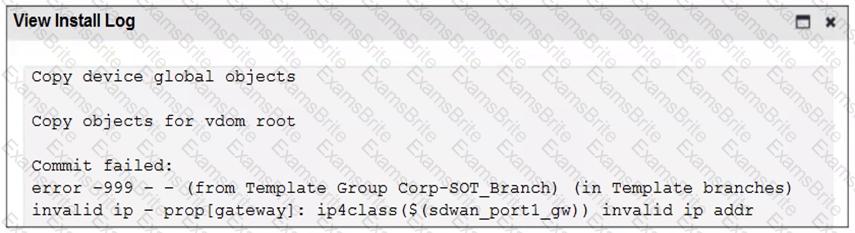 When you install the device settings. FortiManager prompts you with the error "Copy Failed" for the device branch1_fat When you click the log button. FortiManager displays the message shown in the exhibit.