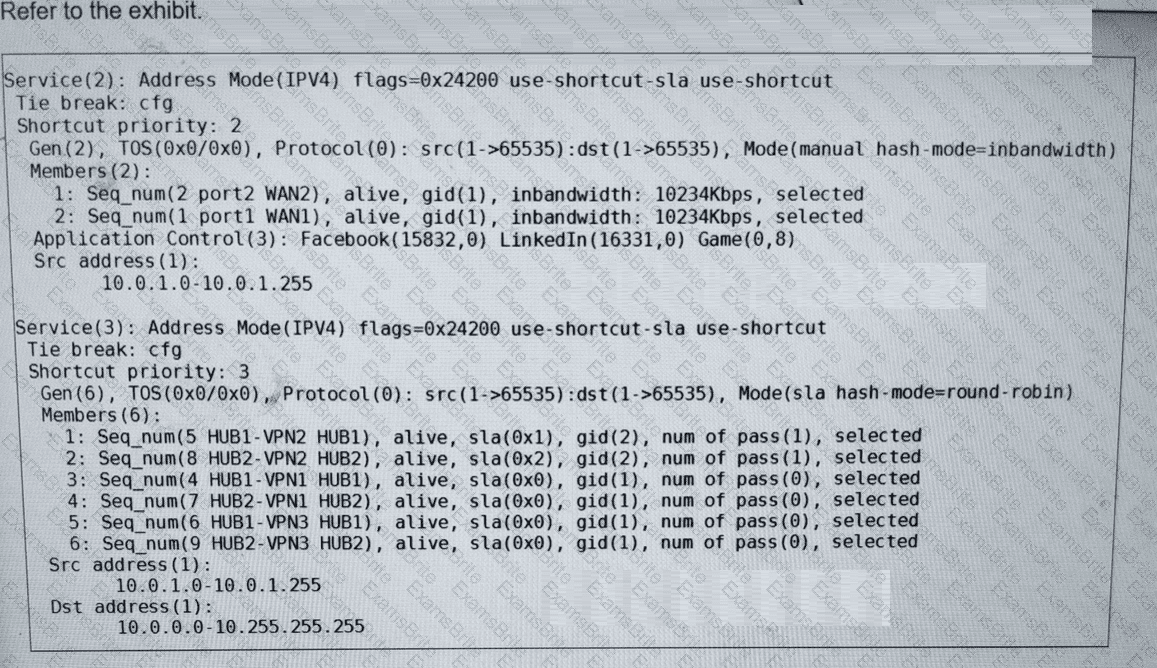 The administrator expects the traffic to match SD-WAN rule ID 1 and be routed over HUB1-VPN1. However, the traffic is routed over HUB1-VPN3.
