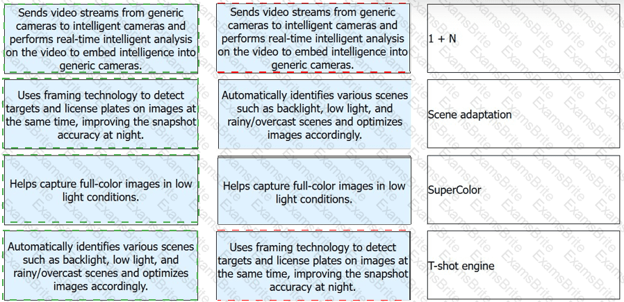 Link the following features of Huawei intelligent cameras to the corresponding description.