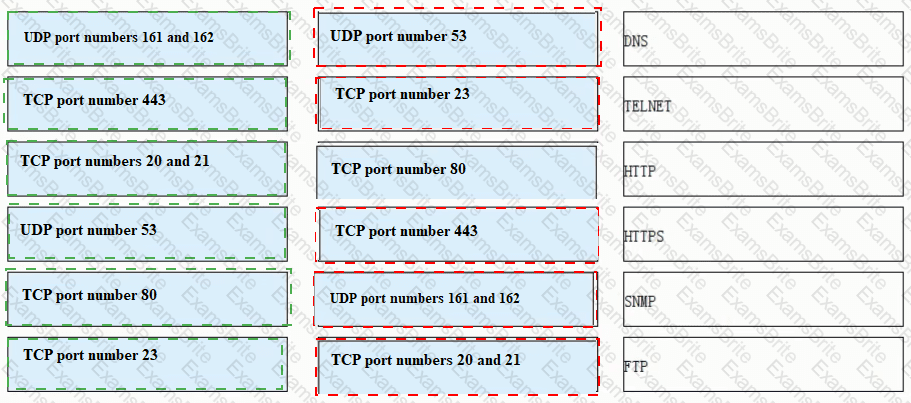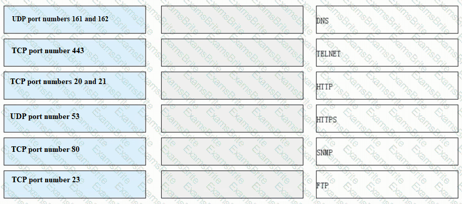 Match each of the following application layer service protocols with the correct transport layer protocols and port numbers.
