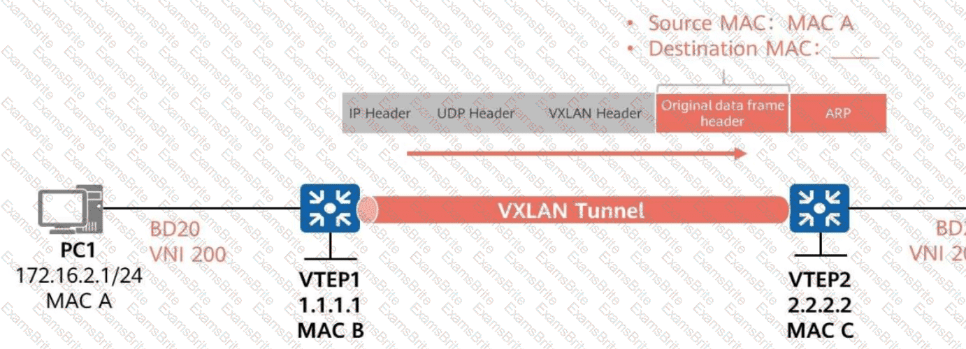 WhenVTEP1 forwards the ARP request for PC1’s MAC address to VTEP2,