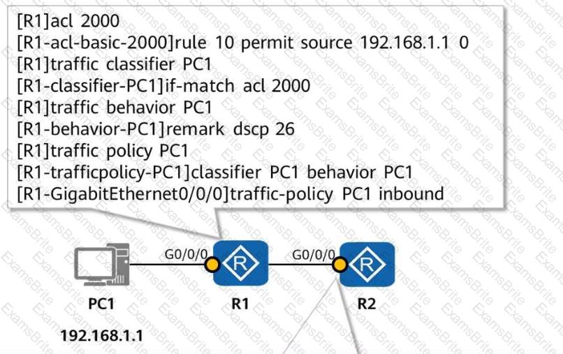 Refer to the configuration in the figure. Which queue on R2 do packets of PC1 enter by default?