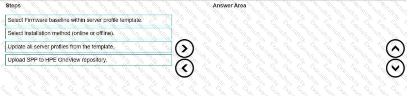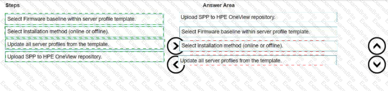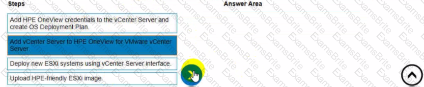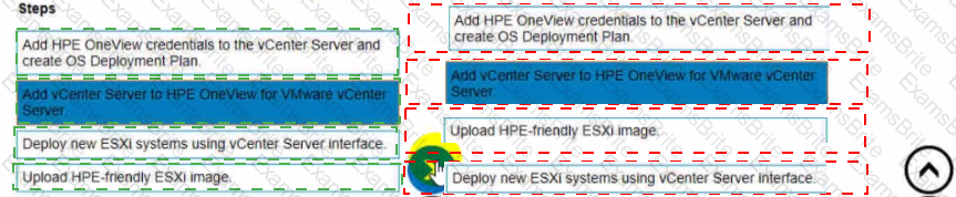 Put the steps required to configure HPE OneView for VMware vCenter Server on the left into their correct order on the right.