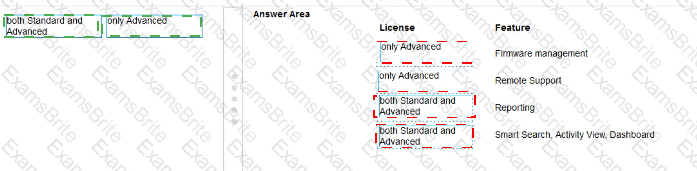 For each feature. indicate whether it is available with both hpe oneview Standard and hpe oneview Advanced licenses, or only with an hpe oneview Advanced license.