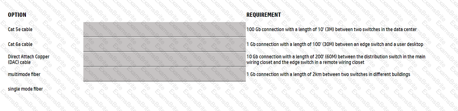 Match the most cost-effective option for cabling each requirement. (All lengths indicate total cable length including patch cable(s), service loops, etc. where used.)