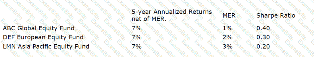 Danny is a Dealing Representative for Everbright Investments. He met with his client Adele, who has $1,000,000 to invest. During their meeting Danny determines that Adele has a high-risk profile. In addition, he learns that she has an excellent understanding of equities and how volatile they can be. Danny is considering recommending growth funds specifically, and making a recommendation from the following investment options: