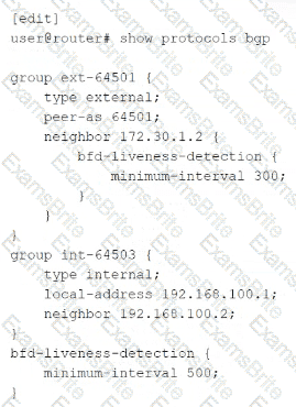 Which statement concerning Bidirectional Forwarding Detection (BFD) is true for the configuration shown in the exhibit?
