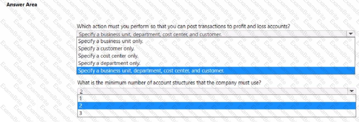 A company wants to track balance sheet accounts 10000..39999 by using different dimensions than their profit and loss accounts 40000..99999. The company wants to track the Customer financial dimension for profit and loss accounts.