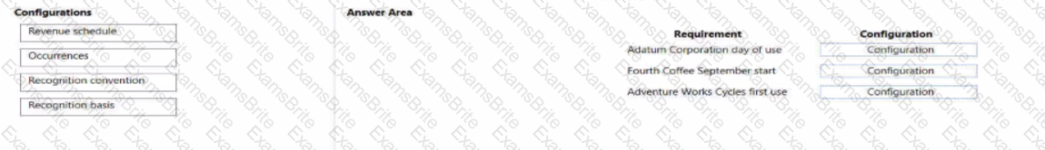 Which configuration should you use? To answer, drag the appropriate configurations to the correct requirements. Each configuration may be used once, more than not at all. You may need to drag the split bar between panes or scroll to view content