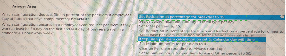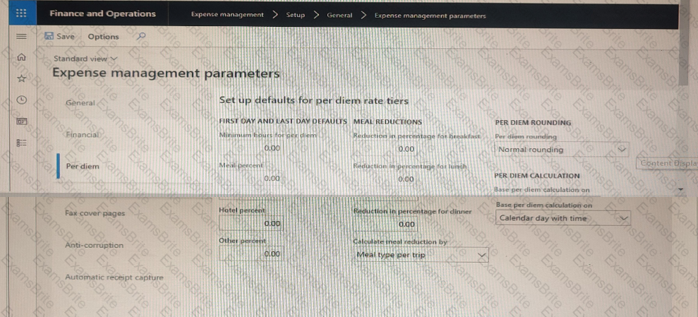 How should you configure the expense module? To answer, select the appropriate options in the answer area.