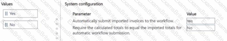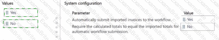 How should you configure the system? To answer, move the appropriate Value to the correct Parameter. You may use each Value once, more than once, or not at all. You may need to move the split bar between panes or scroll to view content.