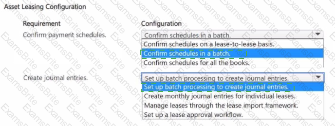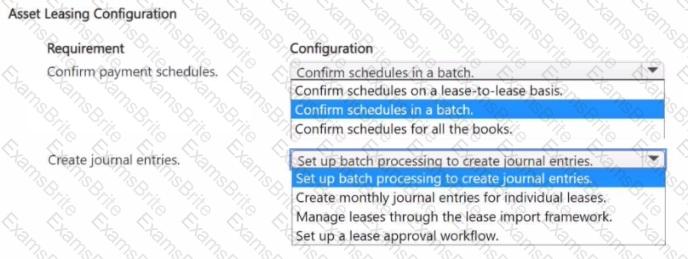 How should you configure asset leasing? To answer, select the appropriate options in the answer area.