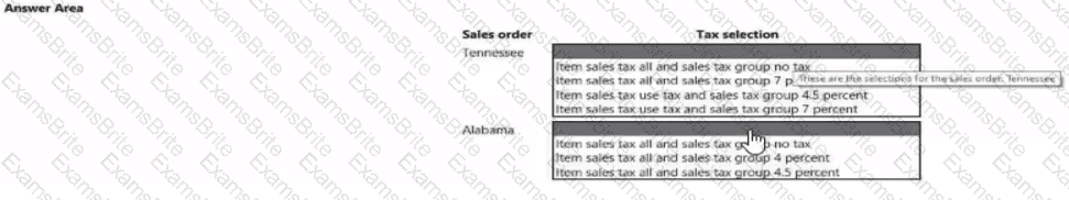 A company uses Dynamics 365 Finance for sales tax calculation and reporting. You have configured the sales tax code, sales tax group, and item sales tax group: The JAX sales tax group includes the following tax codes: