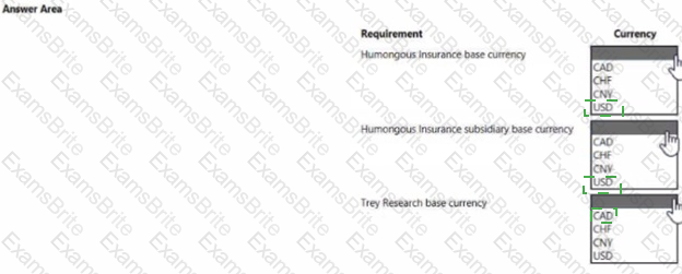 configure currencies? To answer, select the appropriate options in the answer area.
