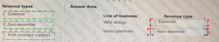 Which revenue type is associated with the line of business? To answer, drag the appropriate revenue types to the correct lines of business. Each revenue type may be used once, more than once, or not at all. You may need to drag the split bar between panes or scroll to view content.