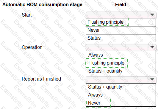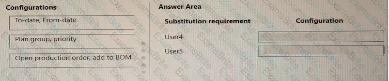 How should you configure the prototype production order? To answer, move the appropriate configurations to the correct requirements. You may use each configuration once, more than once, or not at all. You may need to move the split bar between panes or scroll to view content.