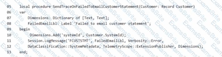 A company is setting up a custom telemetry trace signal to send traces on failed customer statement emails.