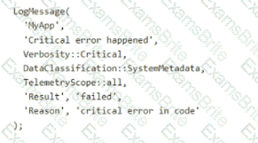 You need to log an error in telemetry when the business process defined in the custom application developed for Contoso, Ltd fails.