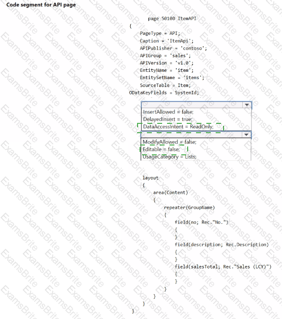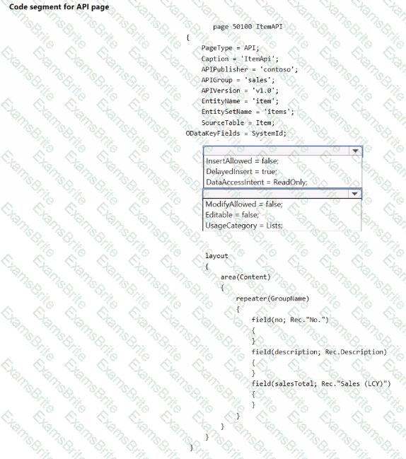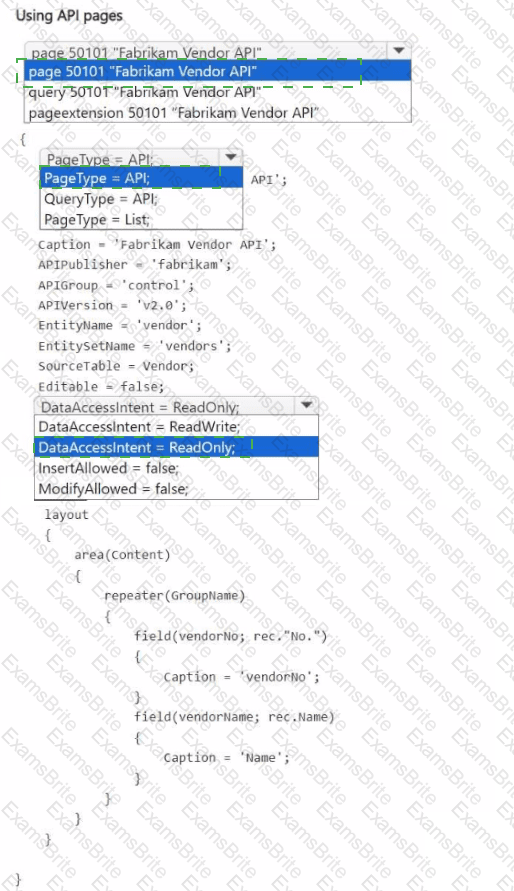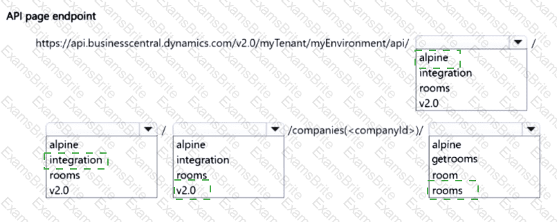 How should you complete the API page endpoint? To answer, select the appropriate options in the answer area.