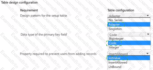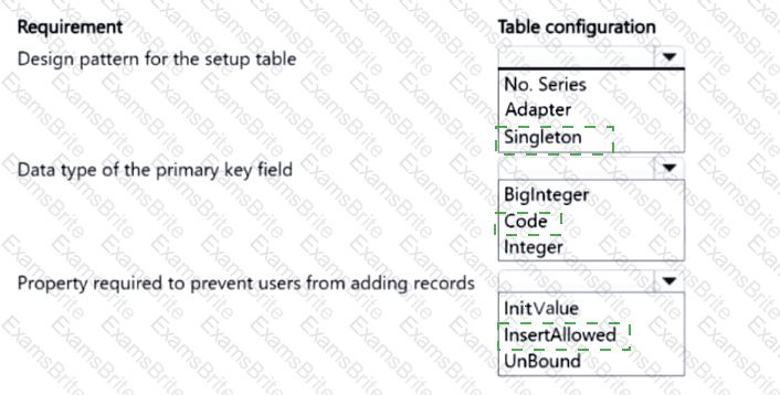 Which table configurations should you use? To answer, select the appropriate options in the answer area.