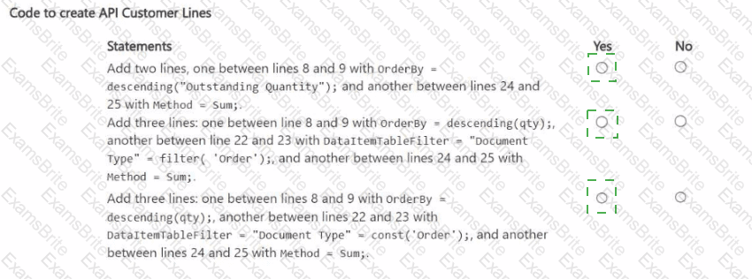 You ate creating a test codeumt for a company that uses Business Central. The company requites the following list of choices while posting a sales order: