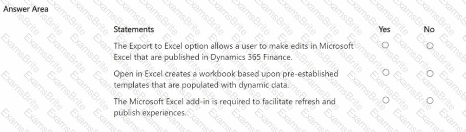 A company plans to implement Microsoft Dynamics 365 Finance.