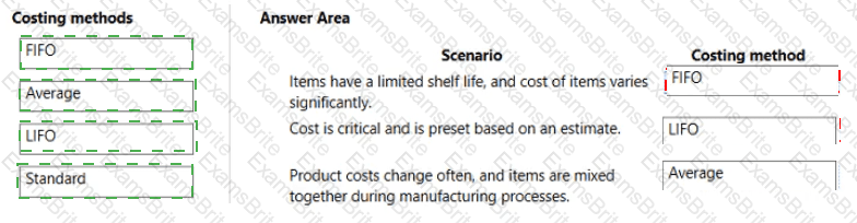 What should you recommend? To answer, drag the appropriate costing methods to the correct scenarios. Each costing method may be used once, more than once, or not at all. You may need to drag the split bar between panes or scroll to view content