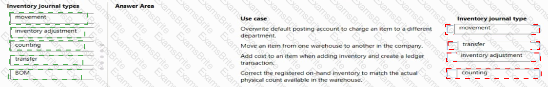 Match each type of inventory journal to its use case. To answer, drag the appropriate type of inventory journal from the column on the left to its use case on the right. Each type of inventory journal may be used once, more than once, or not at all.
