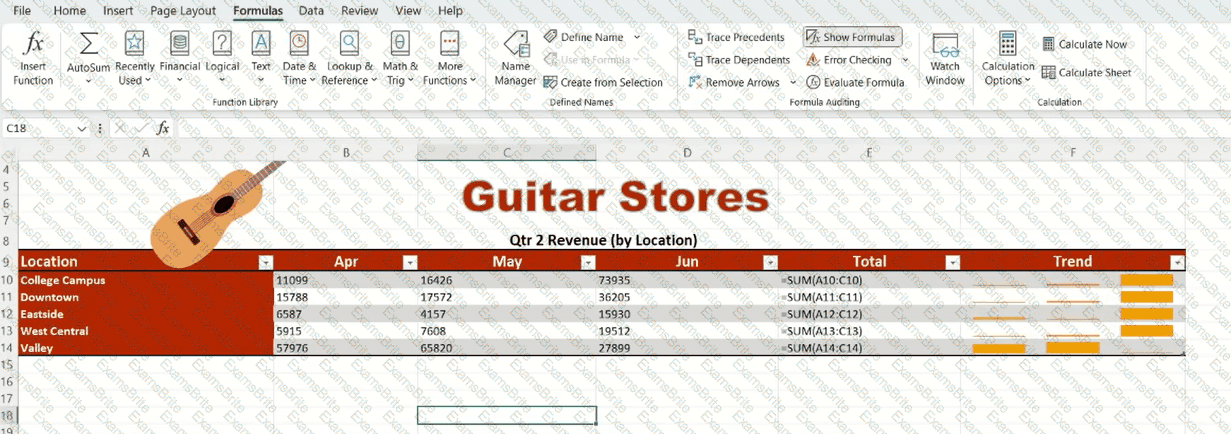 You and a partner own several Guitar Stores. You are analyzing your revenue from the past two quarters.